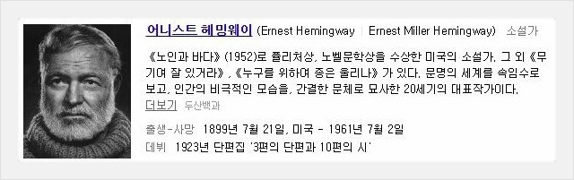 을 수상한 전 세계적인 소설가 어니스트 헤밍웨이