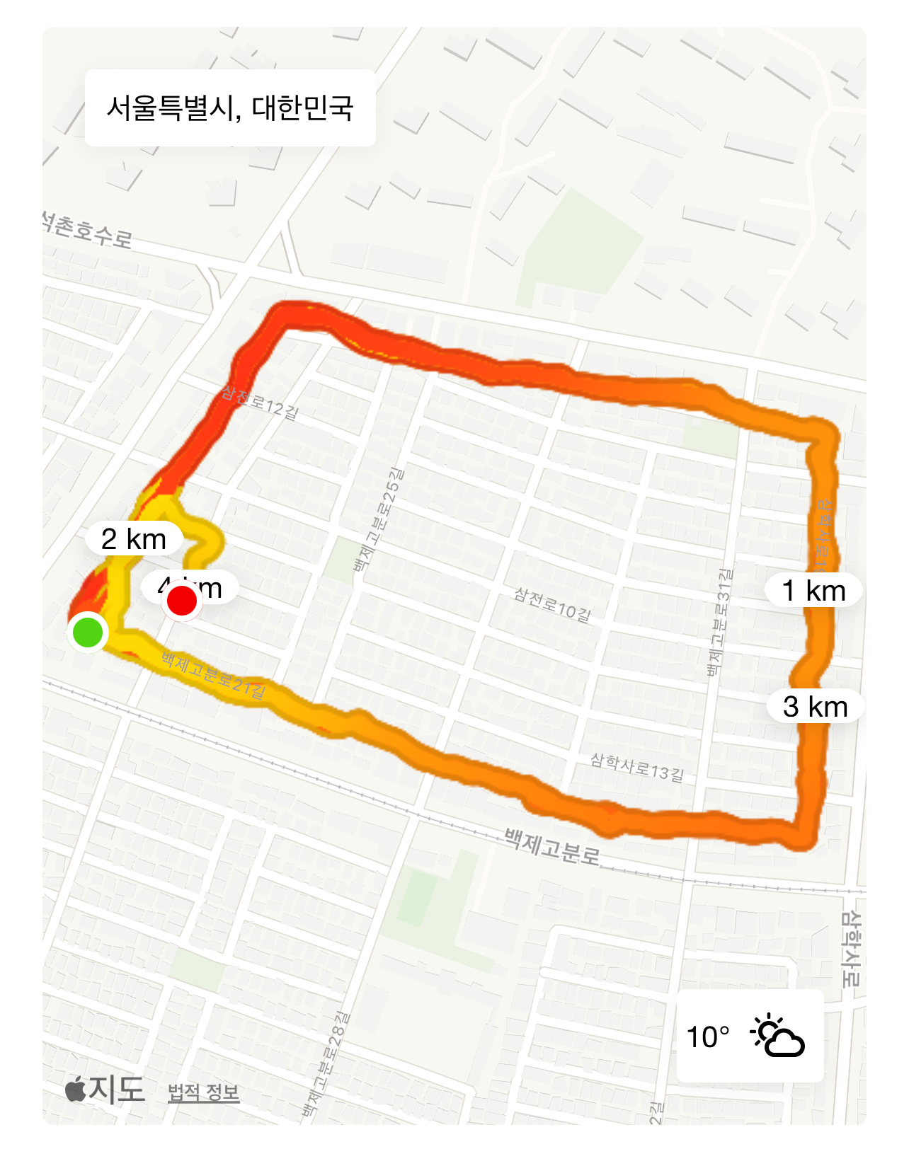 호흡이 딸리지도 않는데 생각보다 빨리 뛰었어서 놀랐던 1km