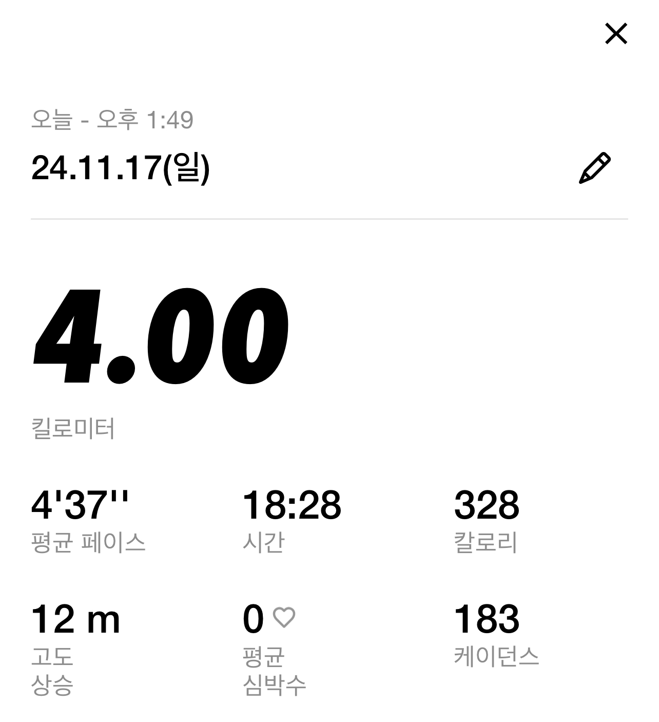 | 24.11.4(월) 러닝 (0) | 2024.11.05 |